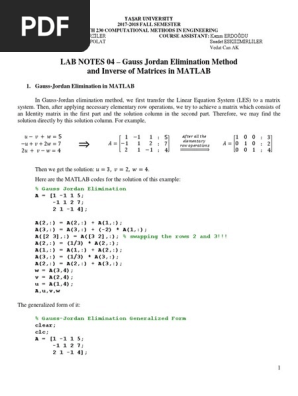 Lab 04 Gauss Jordan And Inverse Of Matrices In Matlab Matrix Mathematics Numerical Analysis