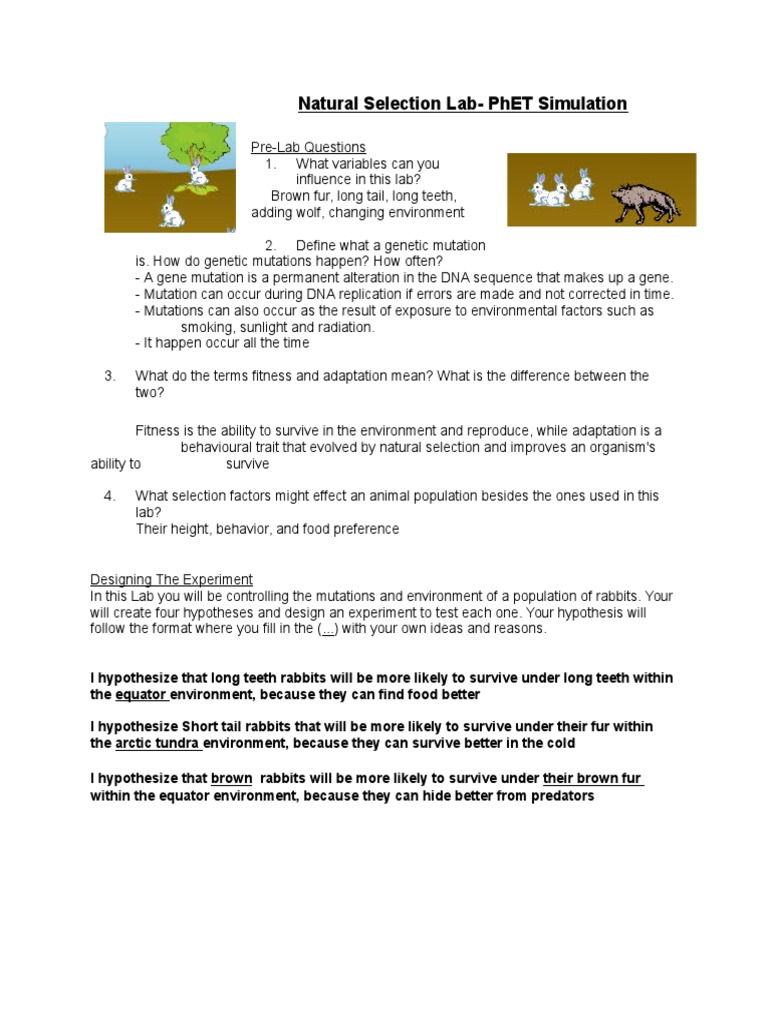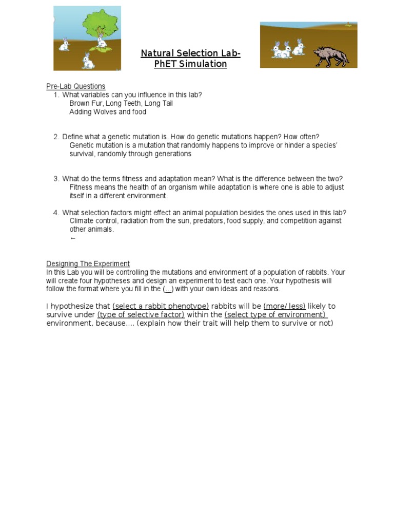 Natural Selection Elab Natural Selection Labphet Simulation Go To Http Phet Colorado Edu En Simulation Natural Selection Pre Lab Questions 1 What Course Hero